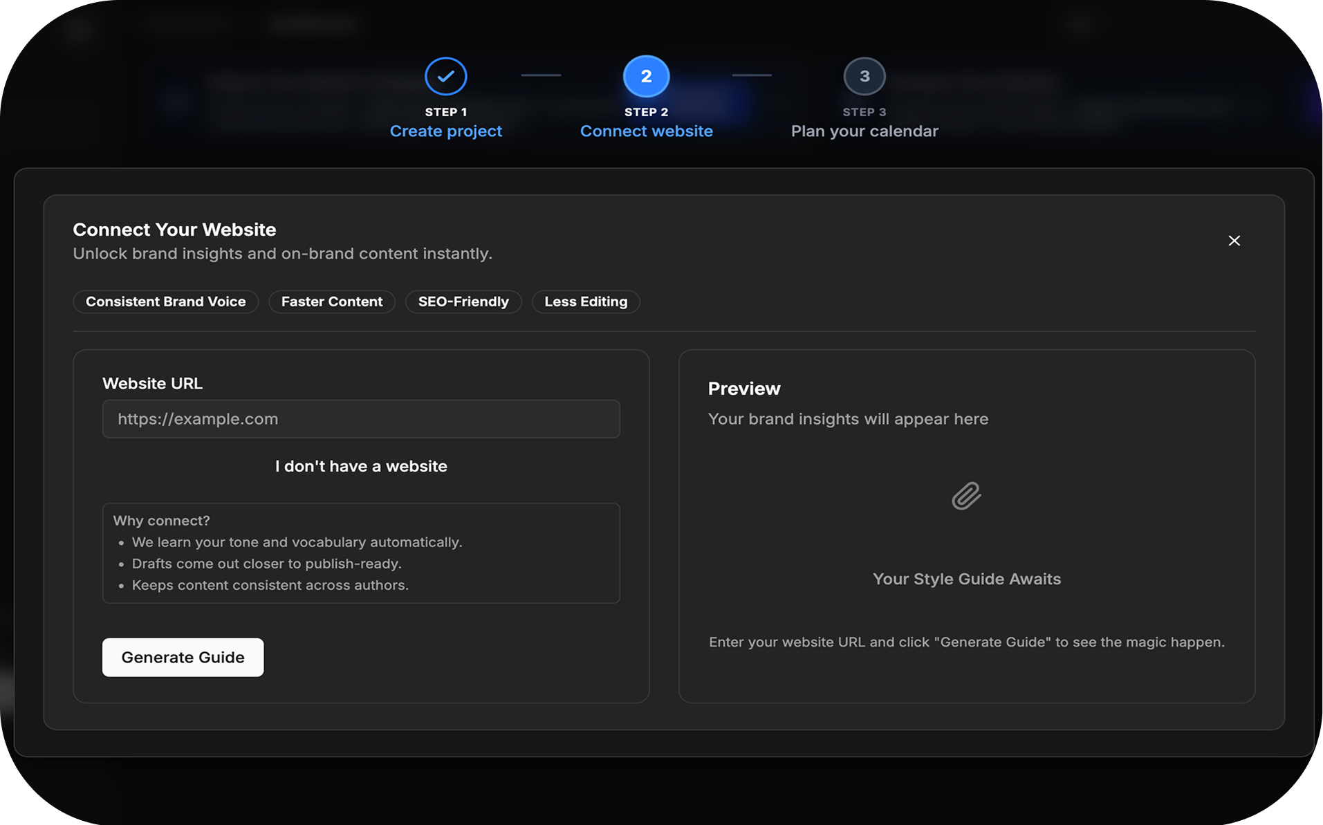 Create AI-powered blog content in 3 simple steps: