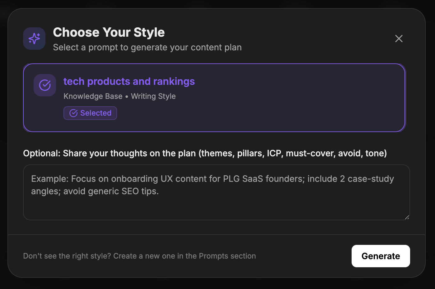 OptionalSelect from different publishing styles you created from the prompts section